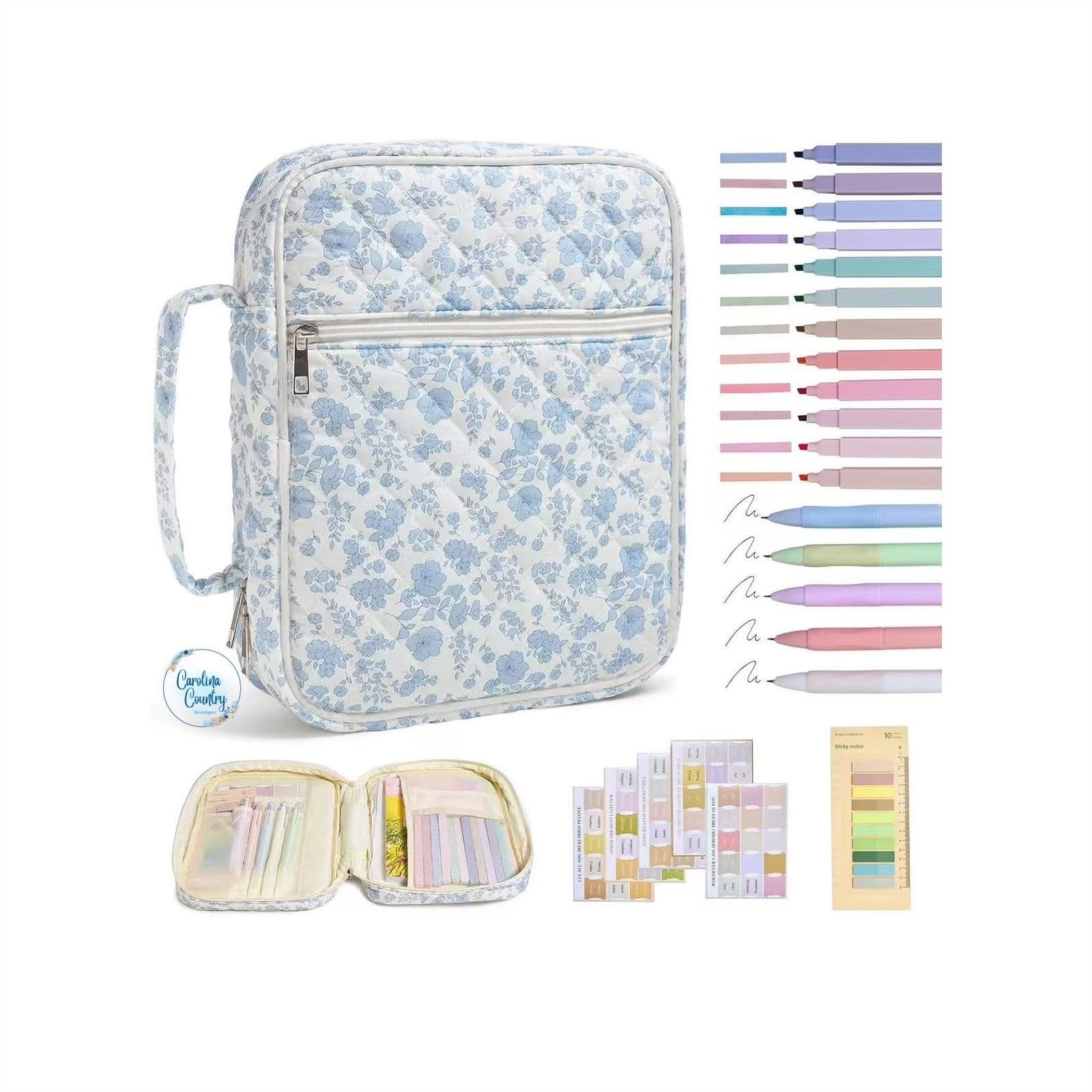 •These floral print bible cover organizers are gorgeous! They come 7 print choices, and measure approx 8.89”x17.78”x3.15”. Comes with 200 index tabs, 5 gel ink pens, 12 highlighters, and 75 bible tabs.